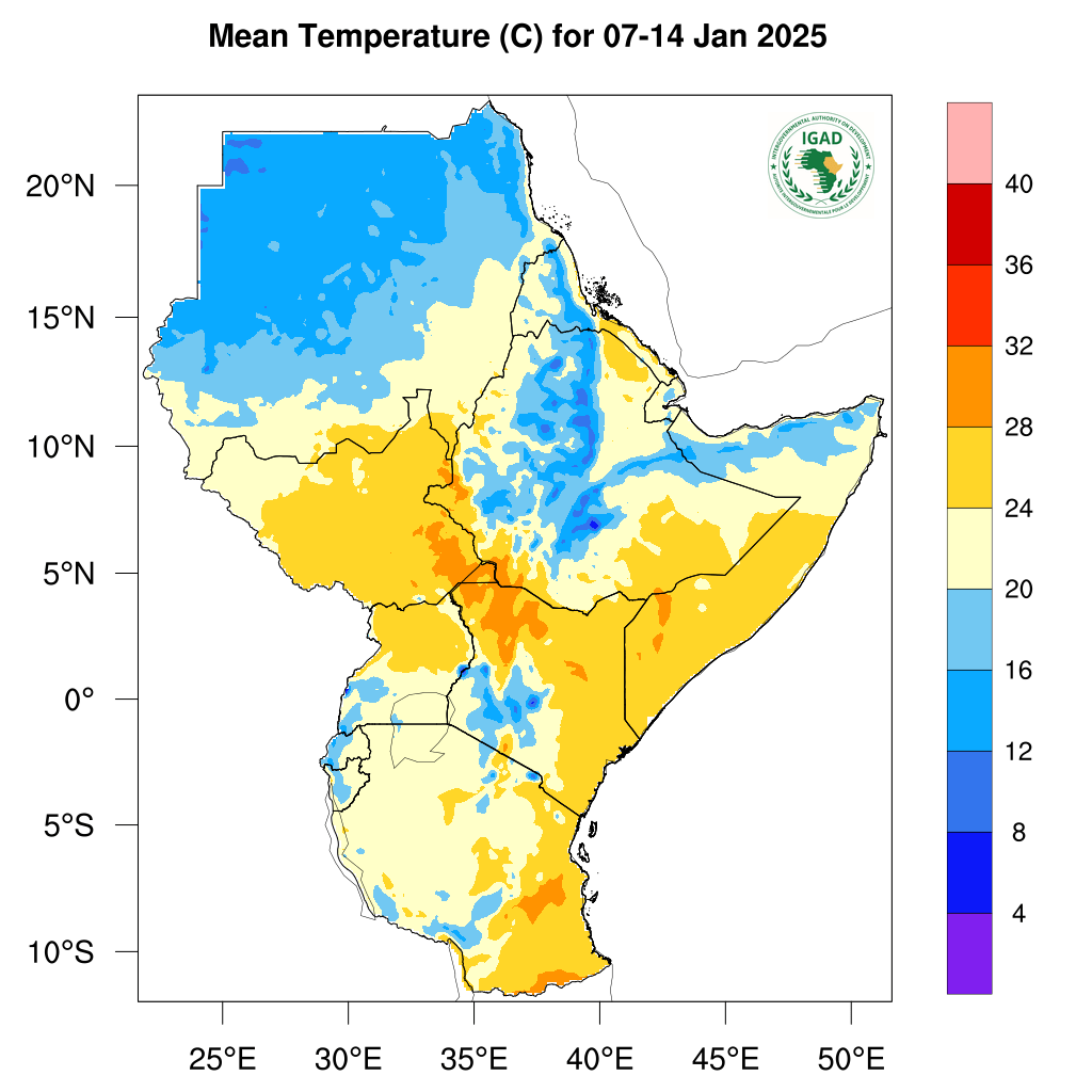The Greater Horn of Africa is set to experience notable weather patterns between January 7 and 14, 2025 ranging from heavy rainfall and higher temperatures. According to IGAD Climate Predictions and Application Center (ICPAC) forecasts, some regions will see heavier-than-usual rainfall, while others will contend with warmer temperatures, signaling a period of significant climatic variation.