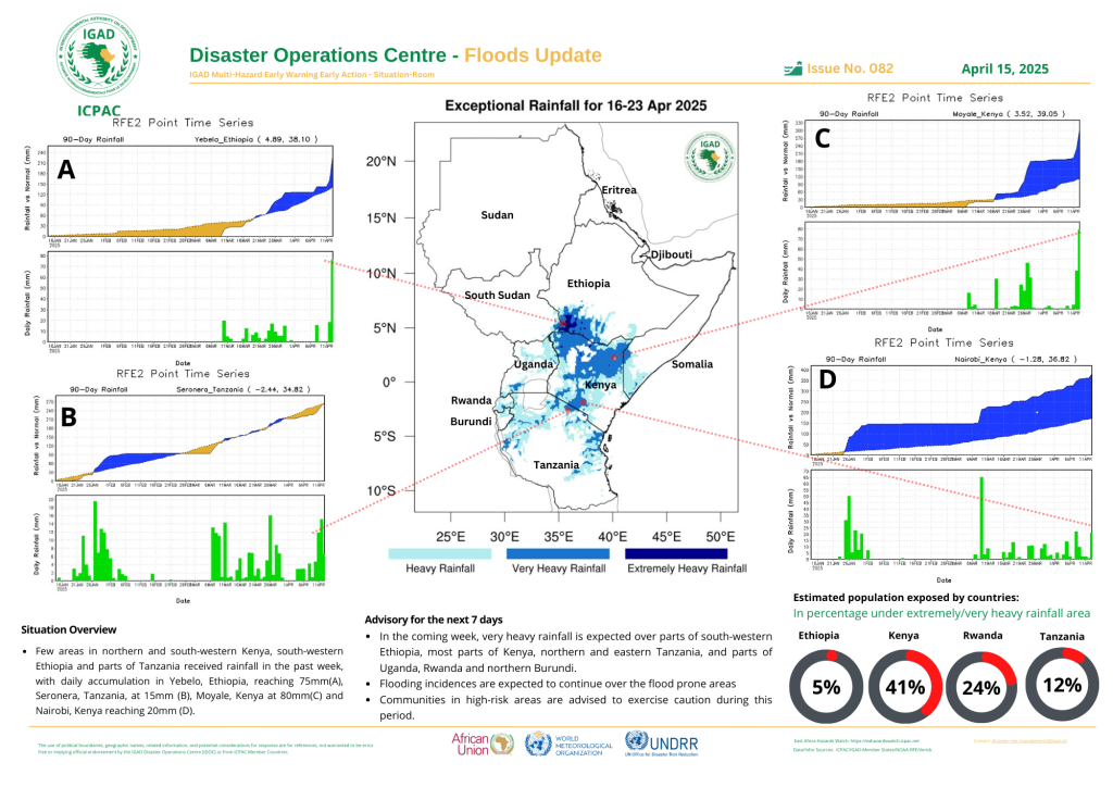Rainfall exceeding the 90th percentile (the highest 10% on record) is expected over parts of south-western Ethiopia, most parts of Kenya, northern and eastern Tanzania, and parts of Uganda, Rwanda, and northern Burundi.